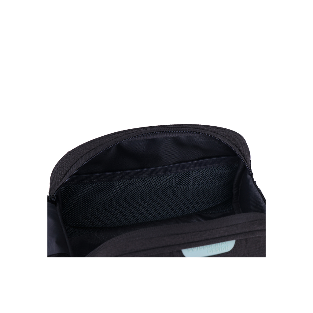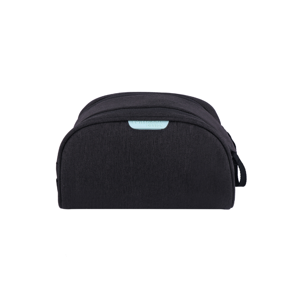 AROSA Wash Bag è una pochette nera dotata al suo interno di una tasca in rete. Perfetta come necessaire per contenere cosmetici e altri piccoli accessori.