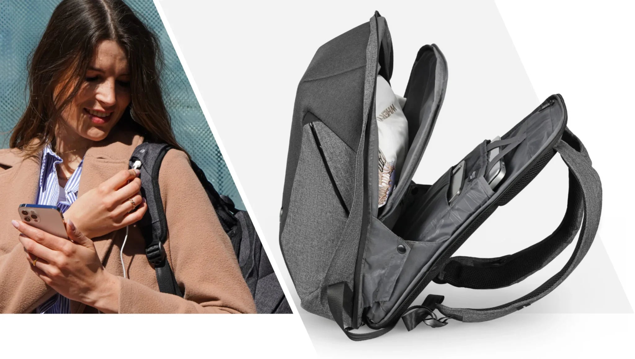 Lo zaino perfetto per i viaggi in aereo. Con poche semplici mosse, lo zaino può essere aperto a 90-180 gradi, permettendo al personale di sicurezza dell'aeroporto di ispezionare in modo semplice e veloce il tuo bagaglio a mano.