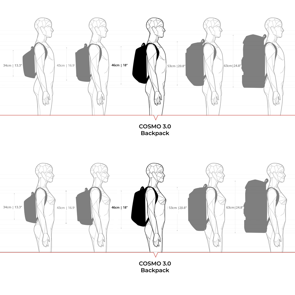 I prodotti COSMO 3.0 combinano qualità e comfort con il loro design ergonomico, assicurando che tutti gli elementi essenziali possano essere trasportati facilmente durante il viaggio. L'articolo COSMO 3.0 Backpack | Massage garantisce il comfort per il lungo viaggio grazie alla funzione di massaggio integrata nello zaino, che offre un sollievo rilassante ovunque tu sia.