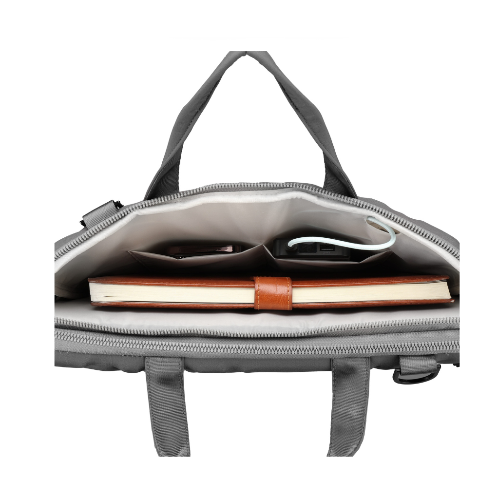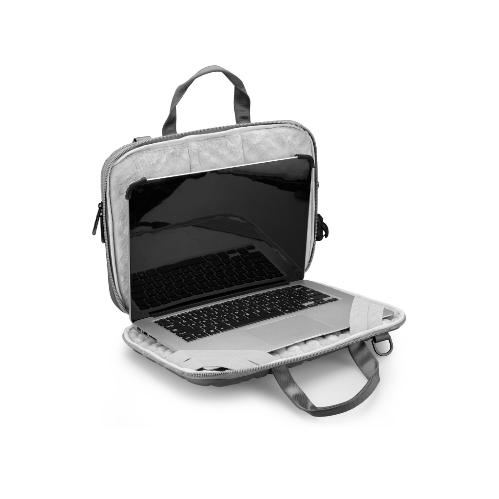 VACALLO Light Gray 16" Sleeve è un'elegante borsa per laptop da 16" grigia decorata da un motivo impresso. Il funzionale interno in microfibra antigraffio è dotato di funzionali tasche portaccessori ed elastici.