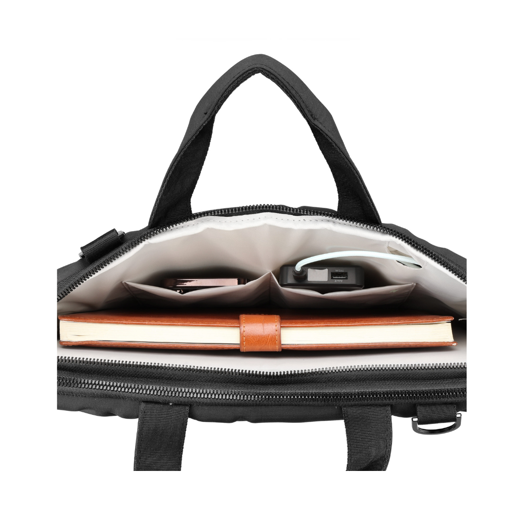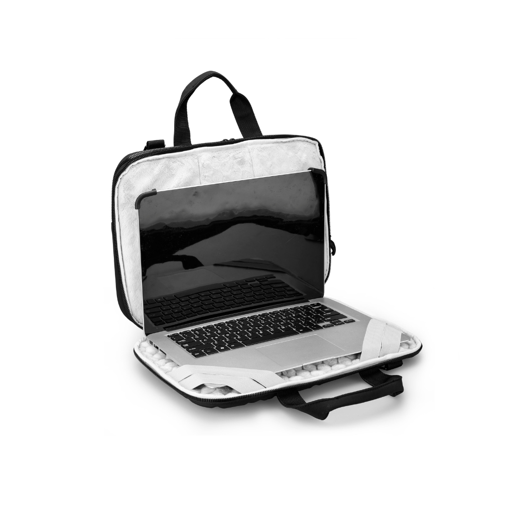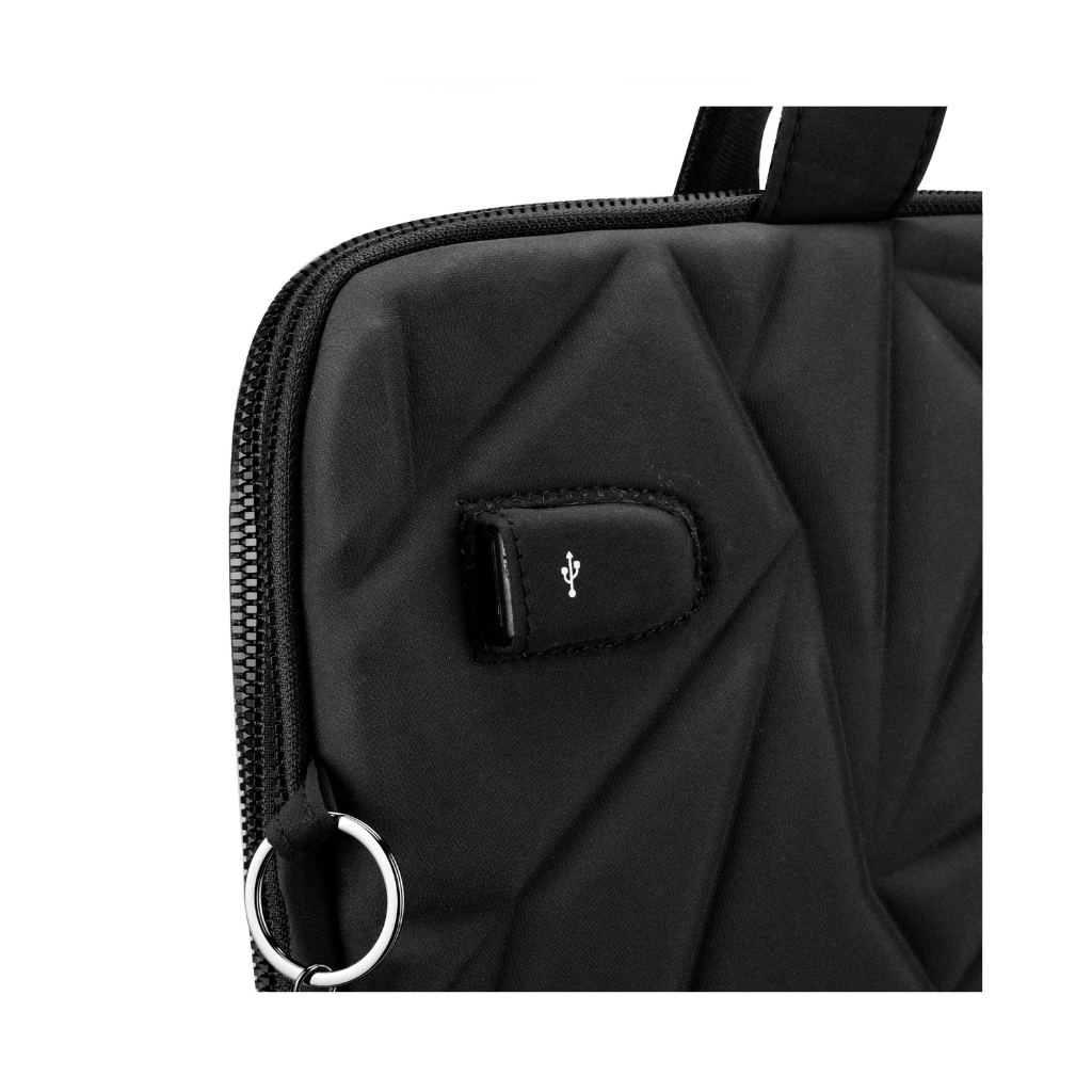 VACALLO Black 14" Sleeve è un'elegante borsa per laptop da 14" nera decorata da un motivo impresso. Il funzionale interno in microfibra antigraffio è dotato di funzionali tasche portaccessori ed elastici.
